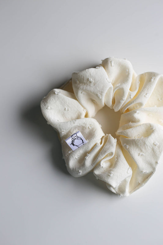Soft Cream Embroidered Scrunchies