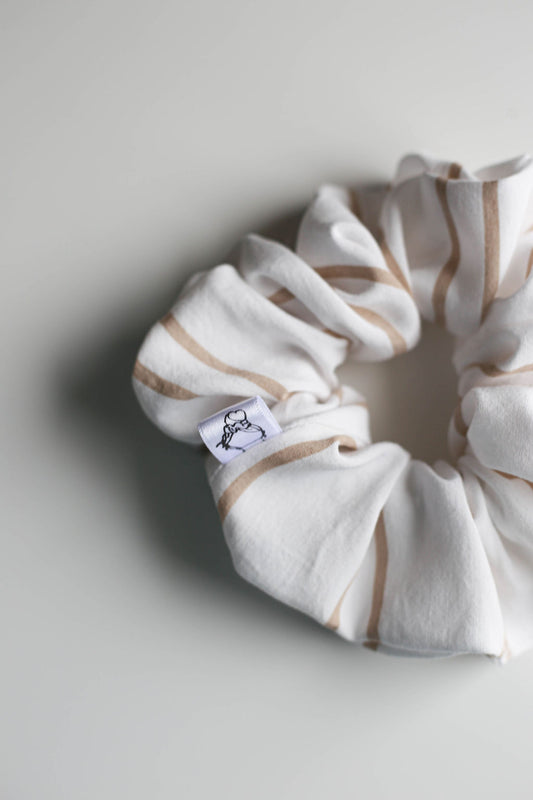 Cream and Taupe Striped Scrunchies